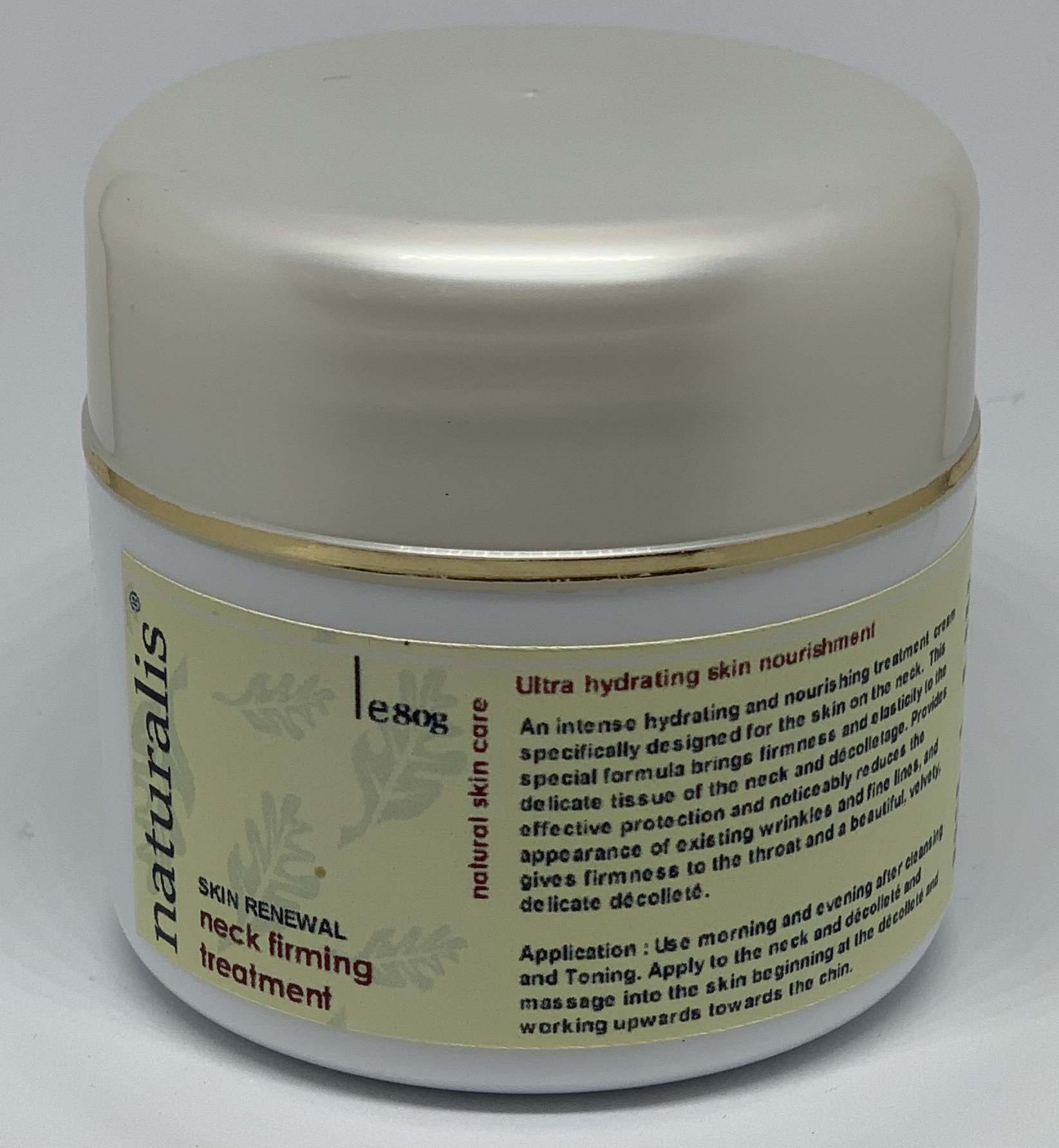 Naturalis Neck Firming Treatment is an intense hydrating and nourishing treatment cream specifically designed for the skin on the neck. A special formula that brings firmness and elasticity to the delicate tissue of the neck and décolletage. It provides effective protection and noticeably reduces the appearance of existing wrinkles and fine lines. Giving firmness to the throat and a beautiful, velvety, delicate décolleté.