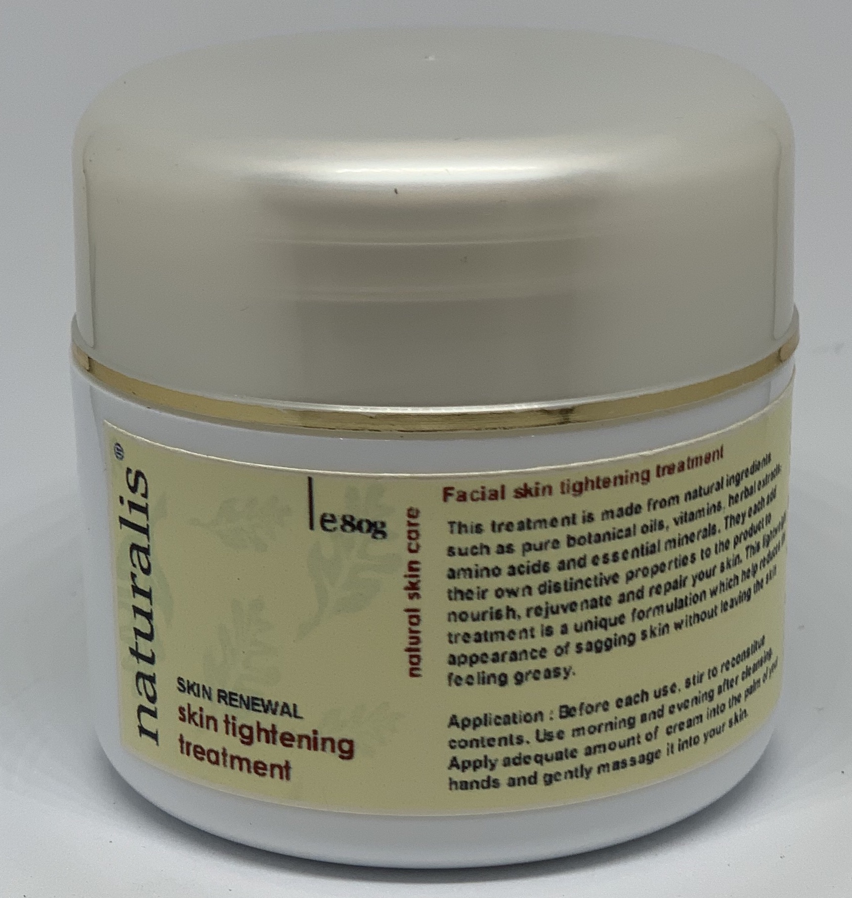 Naturalis Skin Tightening Treatment contains a unique formulation that works to reconstruct the collagen in human skin thereby allowing cells to proliferate and restore healthy tissues. Contains nourishing and rejuvenating properties of natural botanical extracts, amino acids, vitamins and anti-oxidants to renew your skin. The treatment helps to firm, strengthen and regenerate thinning, sagging skin, improves circulation and hydration, revealing a healthier and toned skin. The result is a smoother, more youthful appearance.