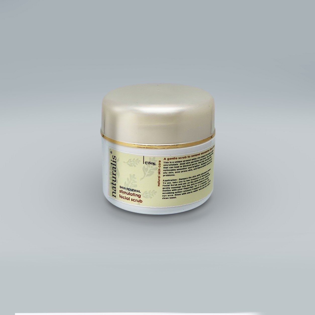 Use 2 to 3 times weekly after thorough cleansing with Naturalis Purifying Cleanser. Dampen the skin with lukewarm water . To use, take one to two teaspoon of the Stimulating Facial Scrub and stir on the palm of your hand and gently massage into the skin in outward circular motions with your fingertips for 1-2 minutes. The scrubbing action releases trapped oil and dirt. Avoid eye area. Rinse with warm water, pat dry with a clean towel. For optimal results, follow up with Naturalis Rejuvenating Toner and Ultra Rich Moisturiser treatment.